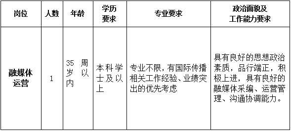 舟山市傳媒集團(tuán)有限公司因事業(yè)發(fā)展需要,面向社會公開招聘1名員工(勞務(wù)派遣性質(zhì)),具體要求如下:
